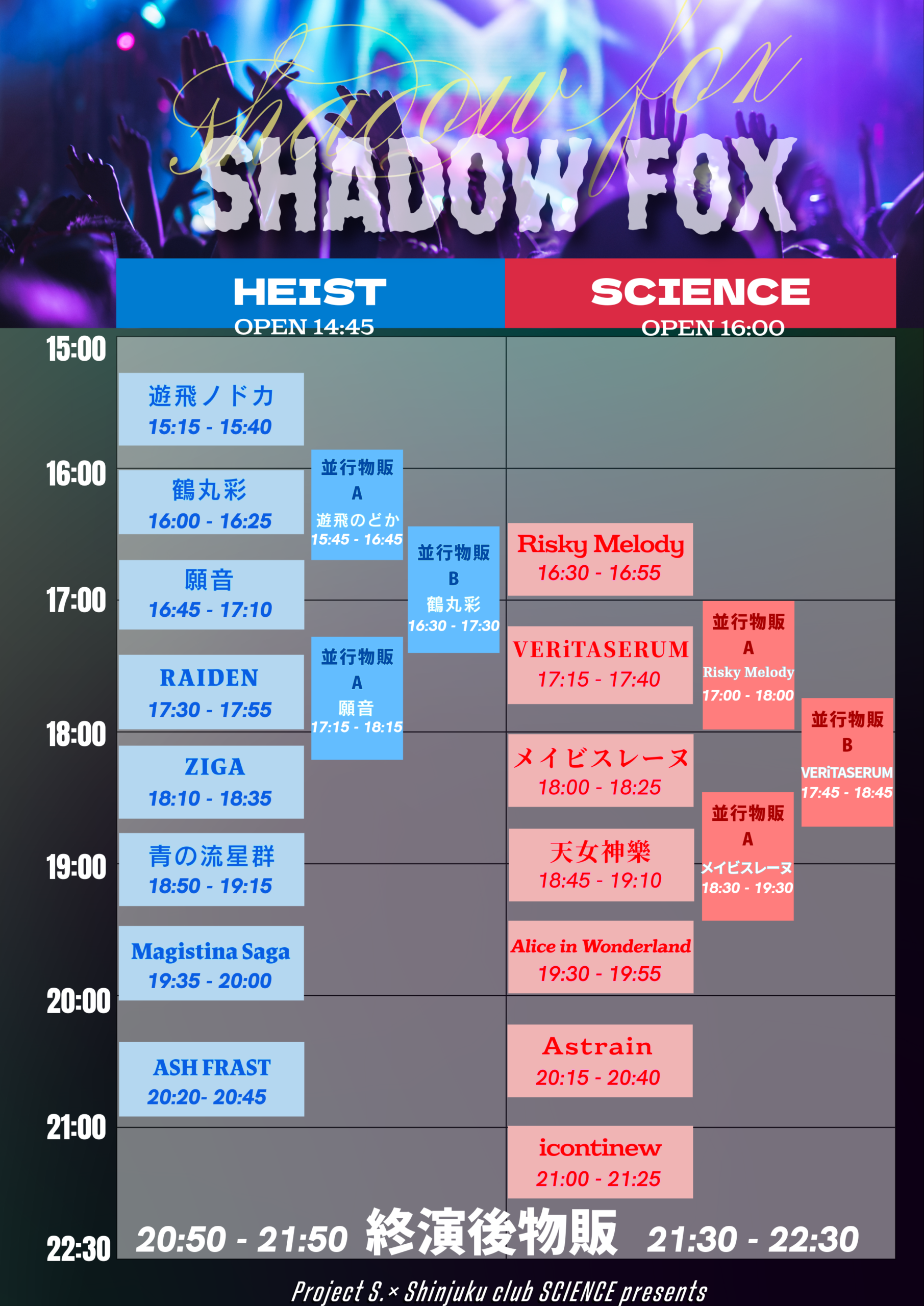 2026年04月12日(日)Shinjuku club SCIENCE 『Project S.× Shinjuku club SCIENCE presents SHADOW FOX』
