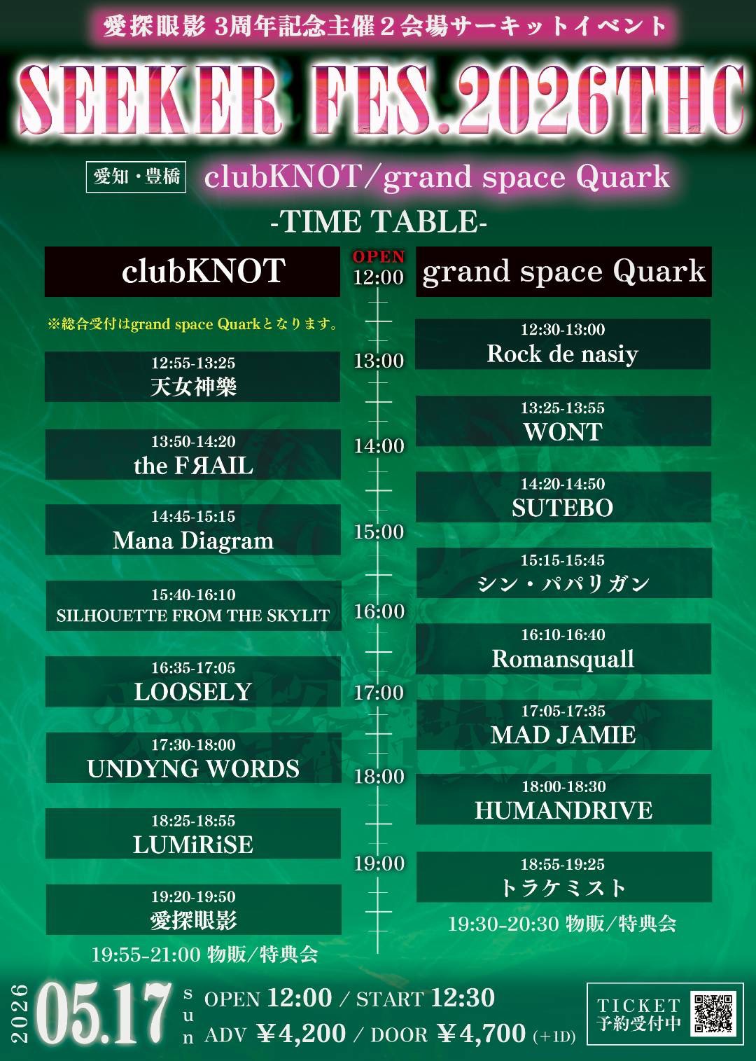 2026年5月17日(日)愛知・豊橋clubKNOT 愛探眼影3周年記念主催 2会場サーキットイベント“SEEKER FES.2026THC”